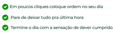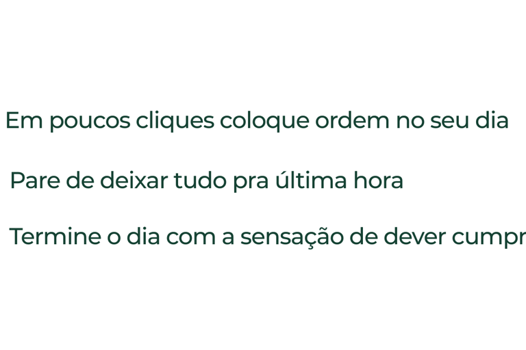 Com apenas 3 minutos por dia, você sente a diferença: Menos correria, mais controle e a certeza de que nada importante ficou para trás.